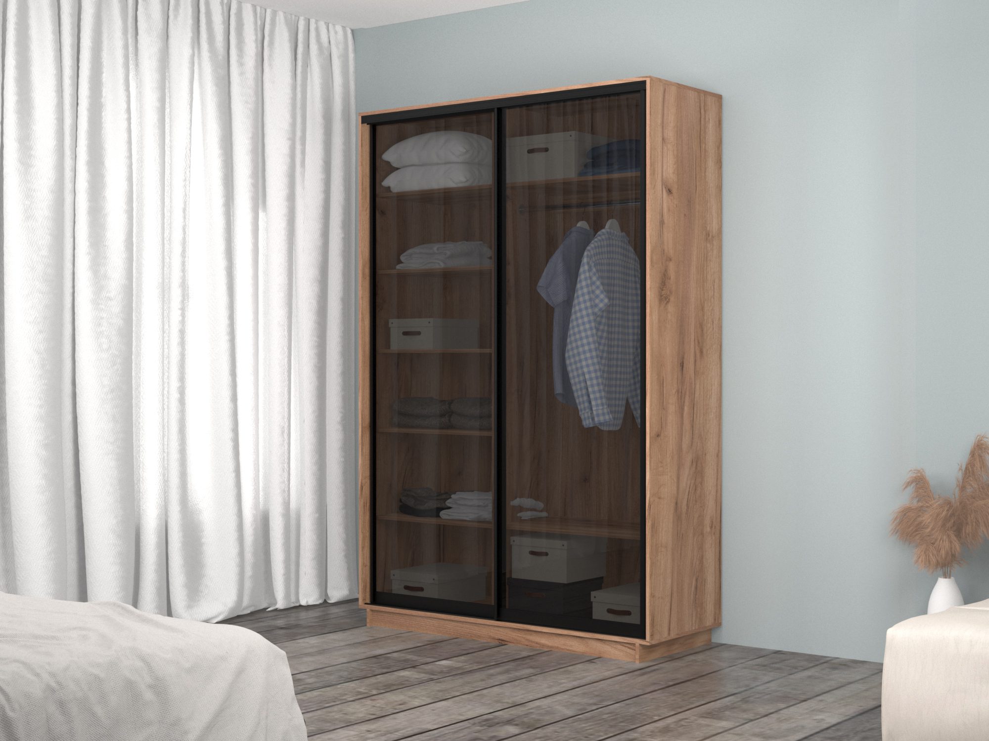 ארון הזזה איכותי עם דלתות שקופות ופרזול שחור