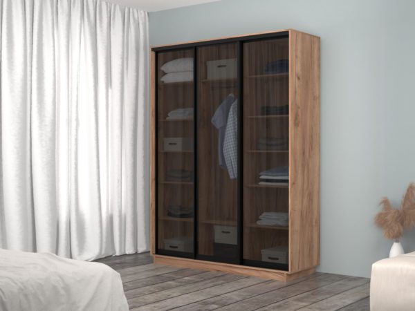 ארון הזזה איכותי עם דלתות שקופות עם פרזול שחור